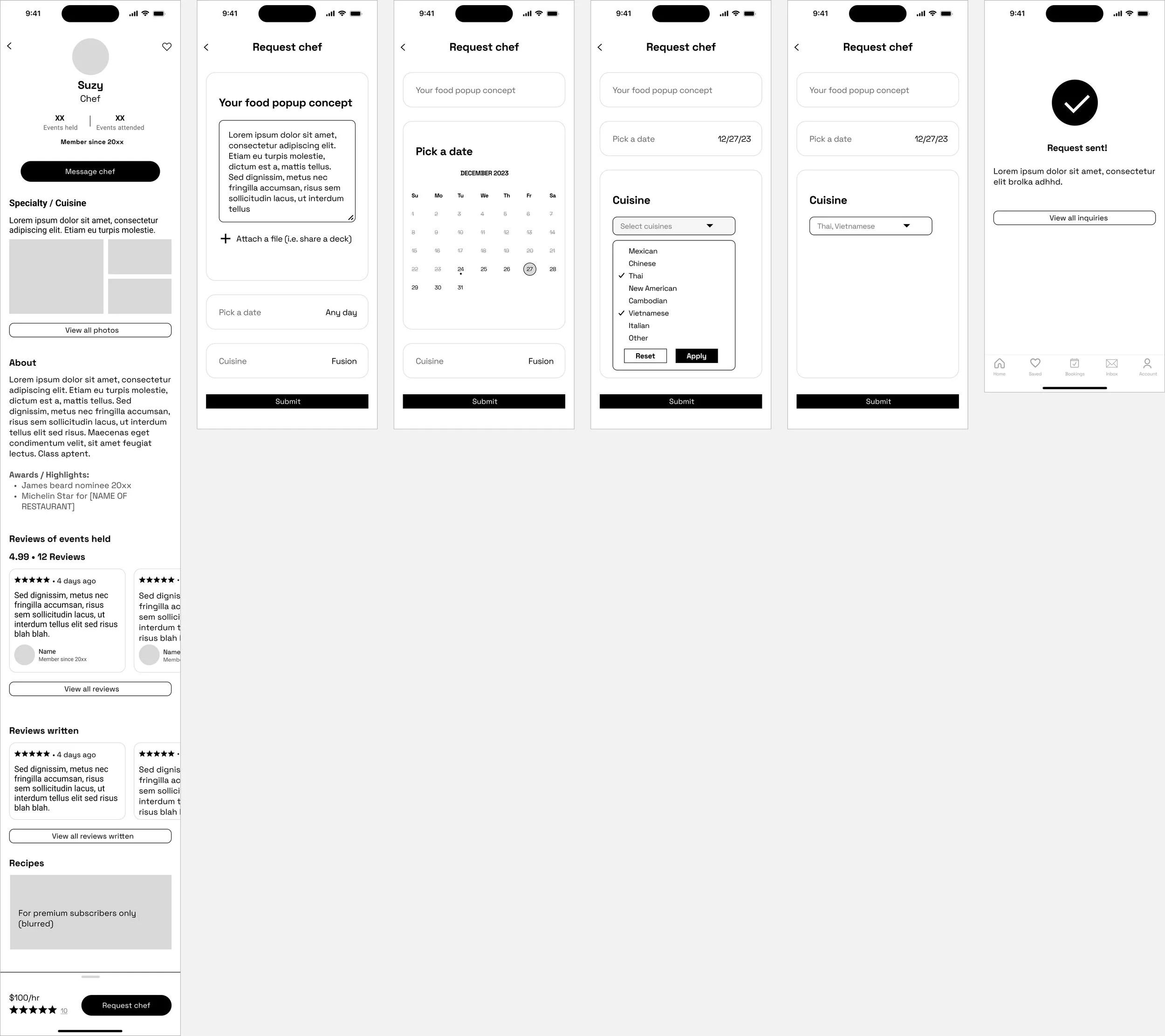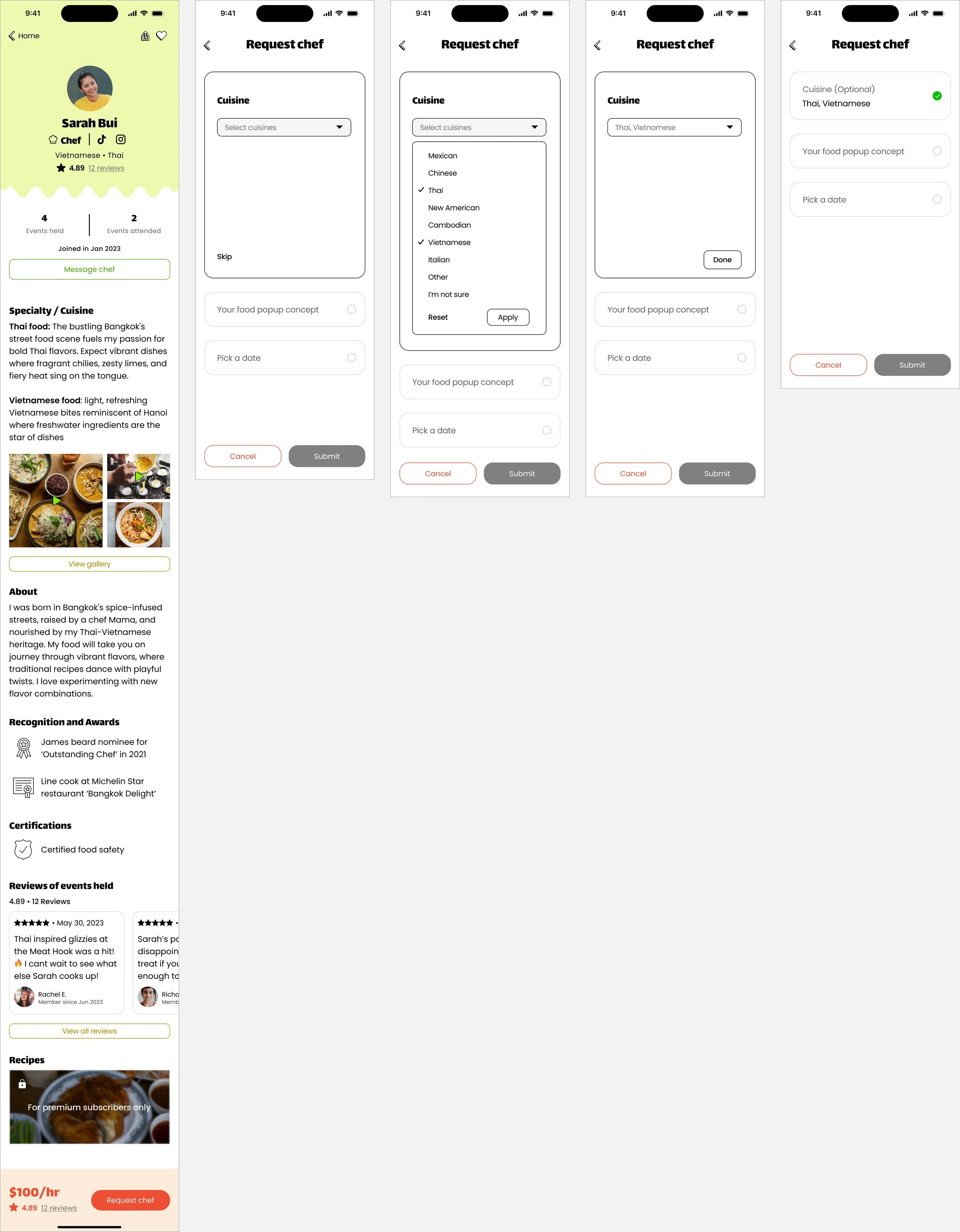 Design an end-to-end app that solves a major pain point for chefs: find pop-up spaces. Cold-calling restaurants can often be an uncomfortable and frustrating experience, but this app removes that barrier entirely. My aim is to empower chefs to break into the pop-up scene and build thriving personal brands that make them stand out in the competitive food landscape.