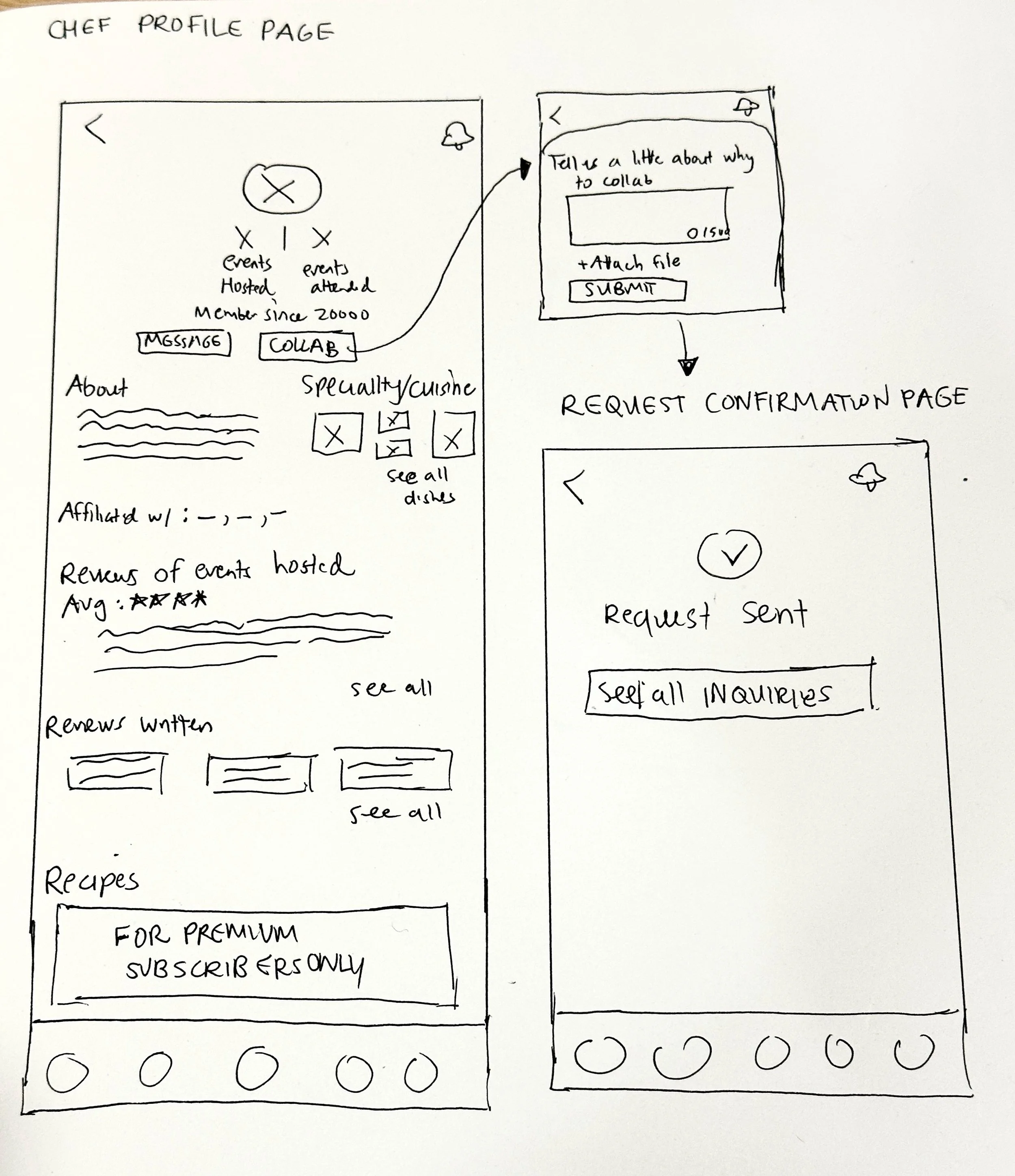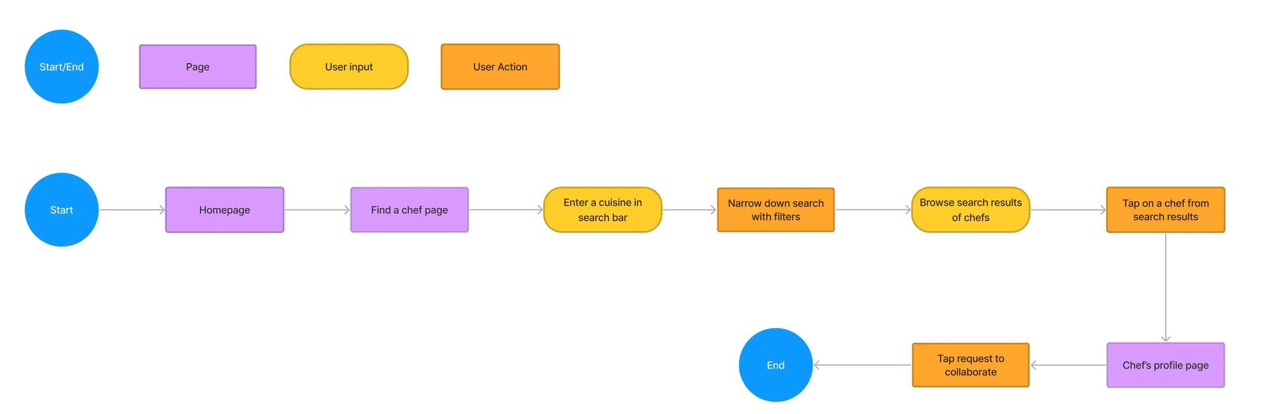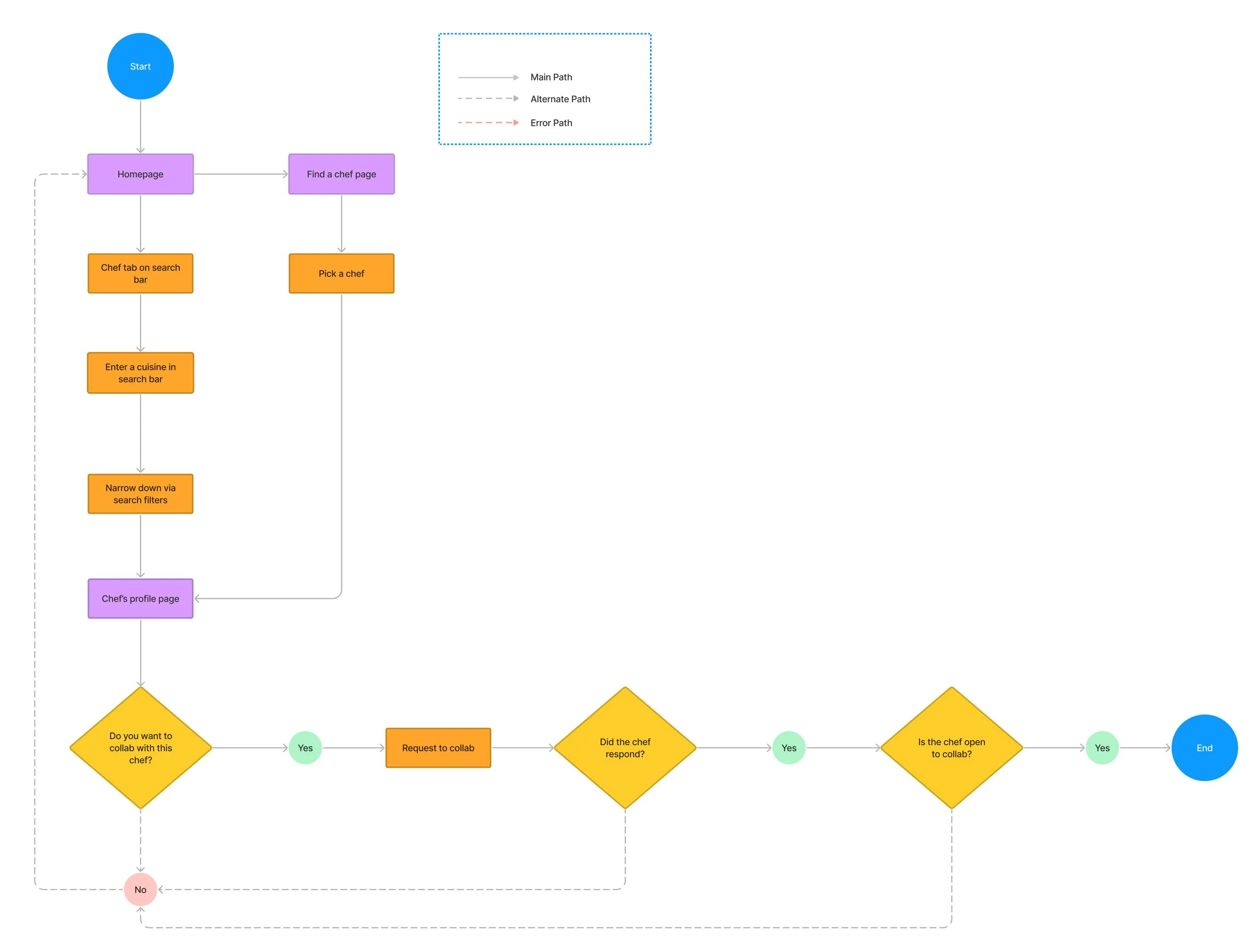 Participants suggested enhancing this flow with more detailed questions, specifically addressing what chefs want to know before collaborating: