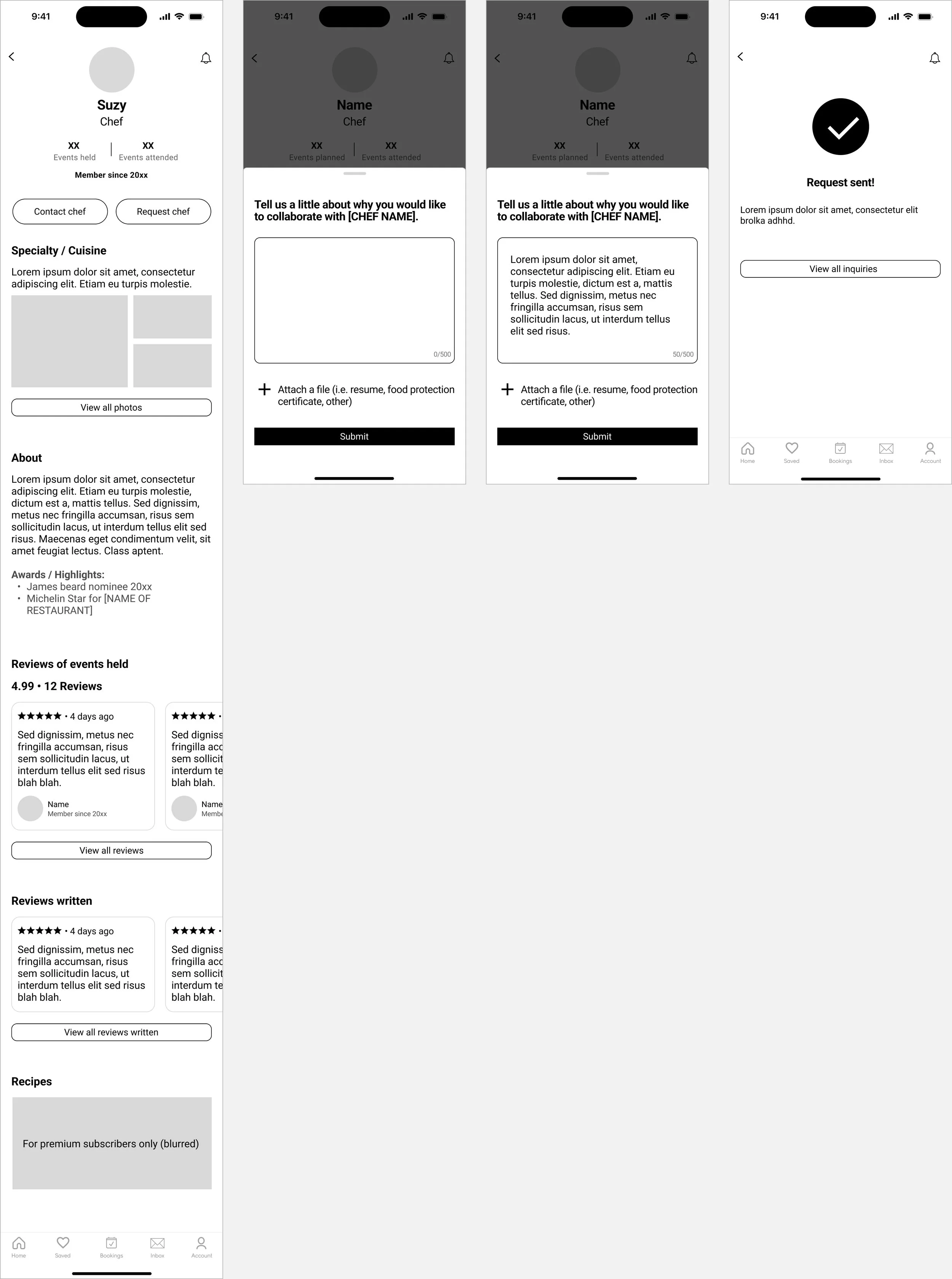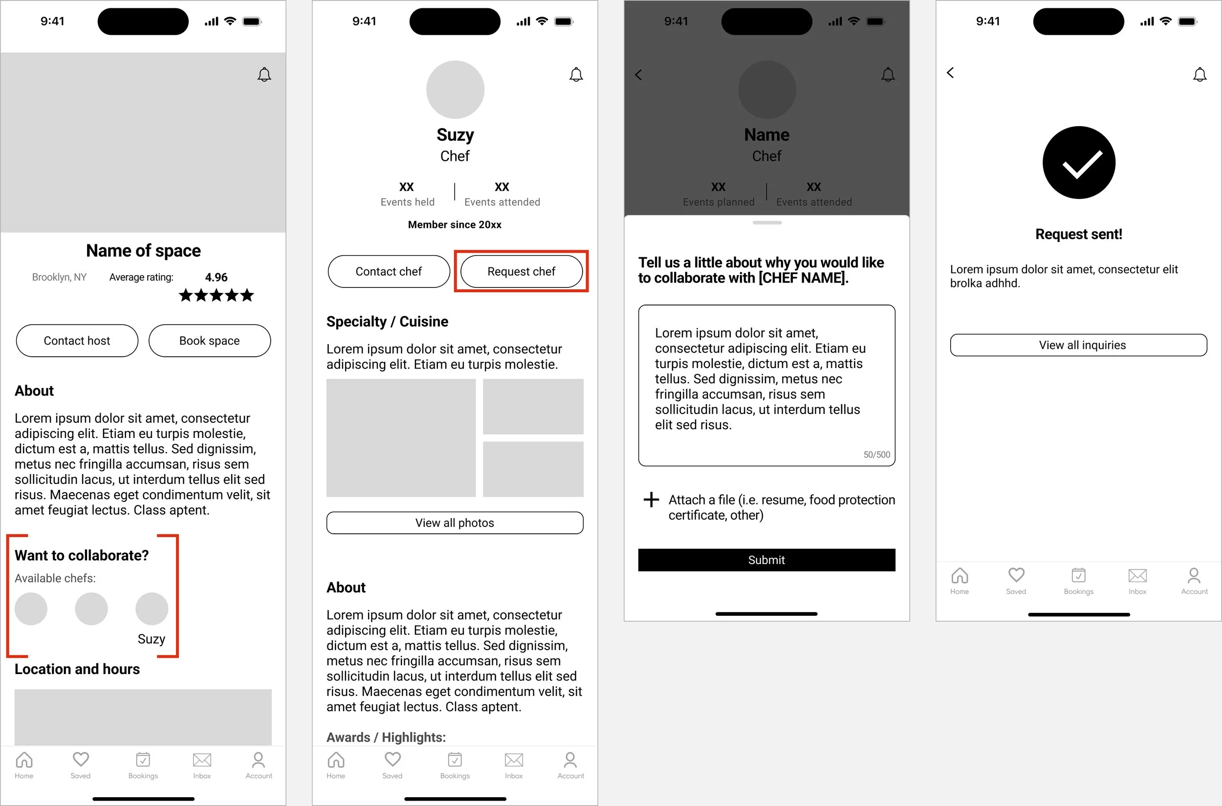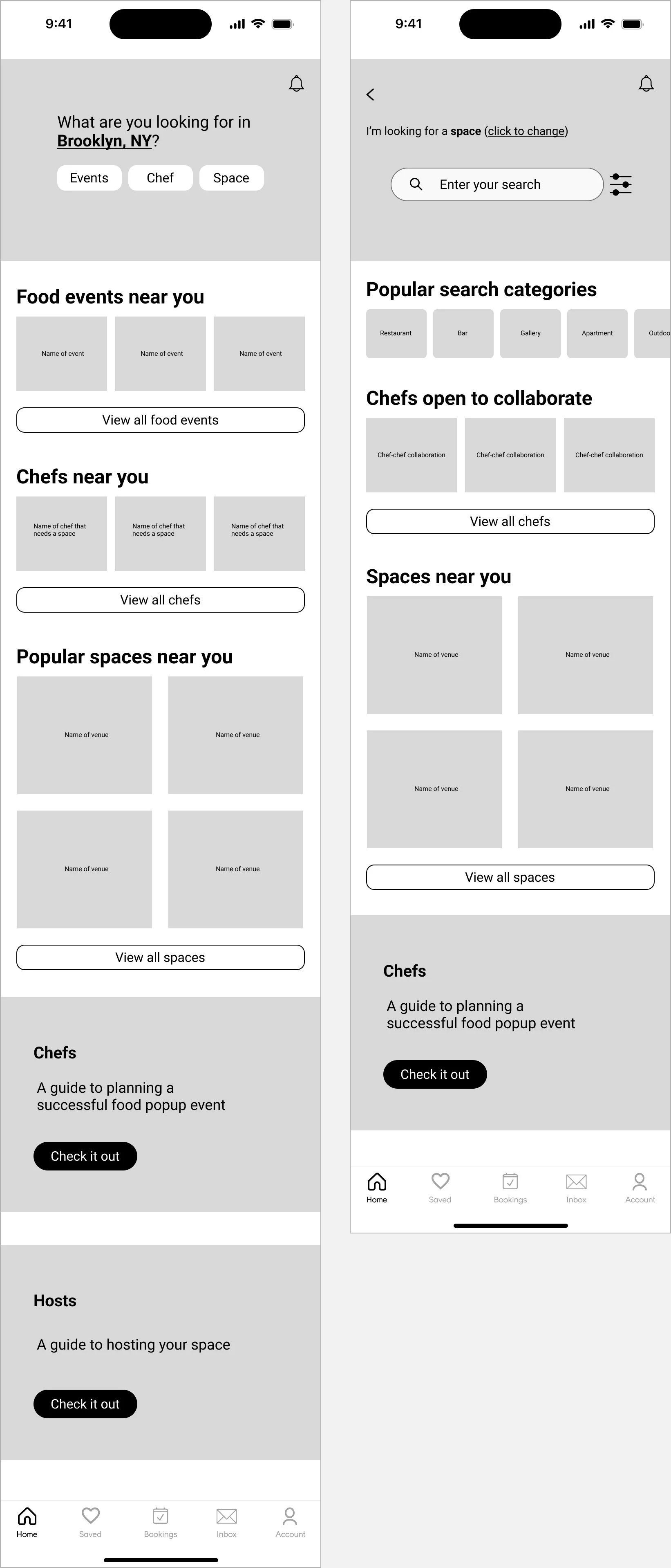 Participants struggled to grasp whether the app catered to chefs or space hosts. The lack of text in the mid-fidelity wireframes likely contributed to this confusion, as users missed crucial context.
