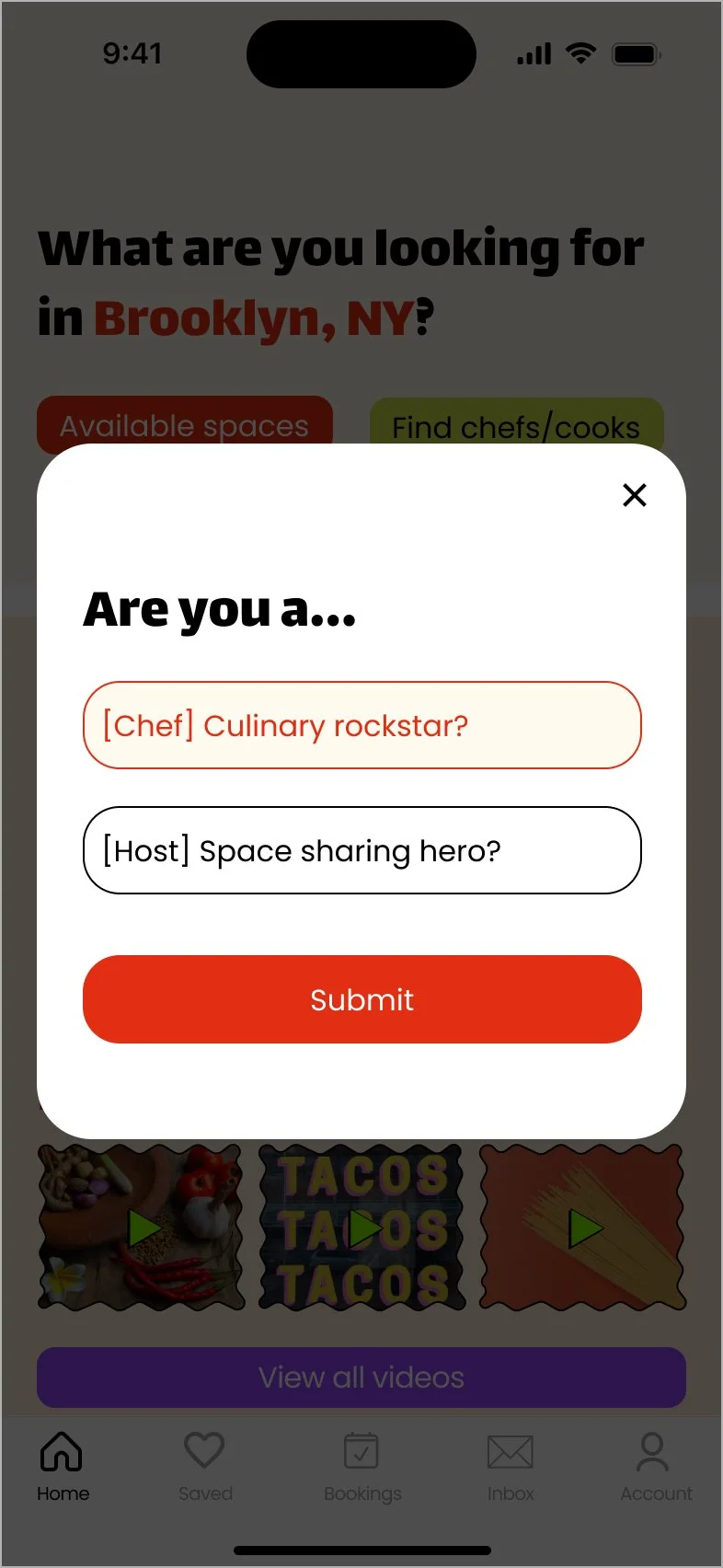 I introduced a modal for users to select the audience that best describes them — are you a chef or a host? The landing page is customized based on the selection chosen.