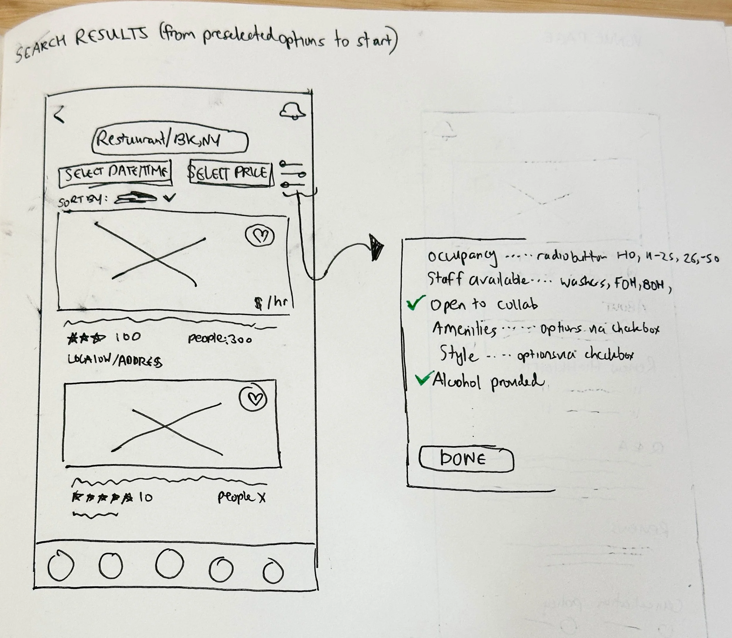 Requesting a chef while booking a space was confusing. Most participants believed there was too much friction introducing the action to request chefs while browsing spaces . Participants mentioned that this flow deterred attention away from the main task of booking a space.