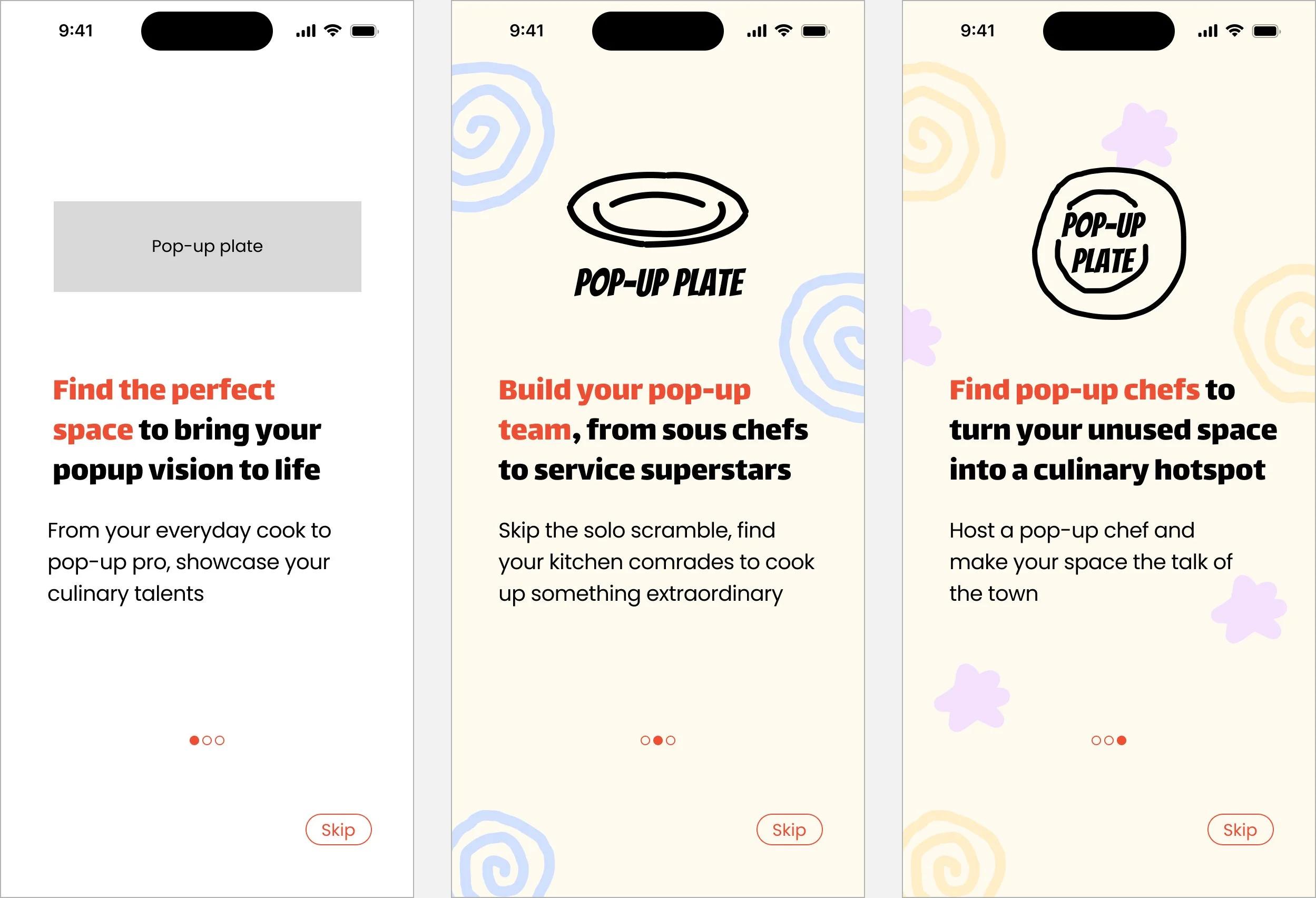 The look and feel of the app should exude boldness, approachability, with a touch of cheeky fun. To embody these qualities, I imagine loud and vibrant colors, silly shapes and combinations that are playful and might break conventional norms. Unlike restaurants, pop-ups embrace imperfection, offering a casual and less refined atmosphere. Given their fleeting nature, pop-ups bring a sense of excitement, and provide chefs with a canvas for limitless innovation in the kitchen.
