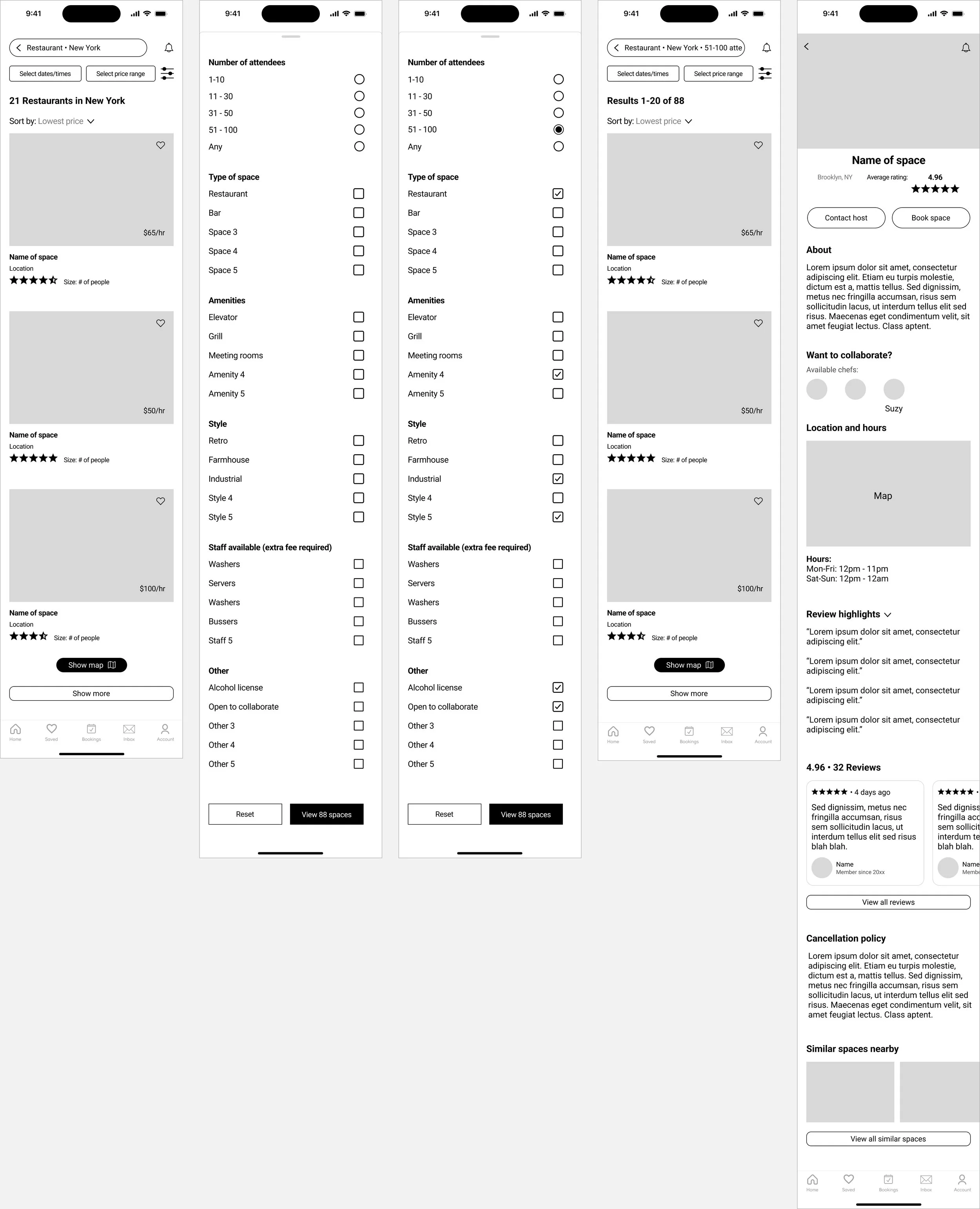Search engine for venues: Detailed filters to help chefs quickly search for their ideal venue