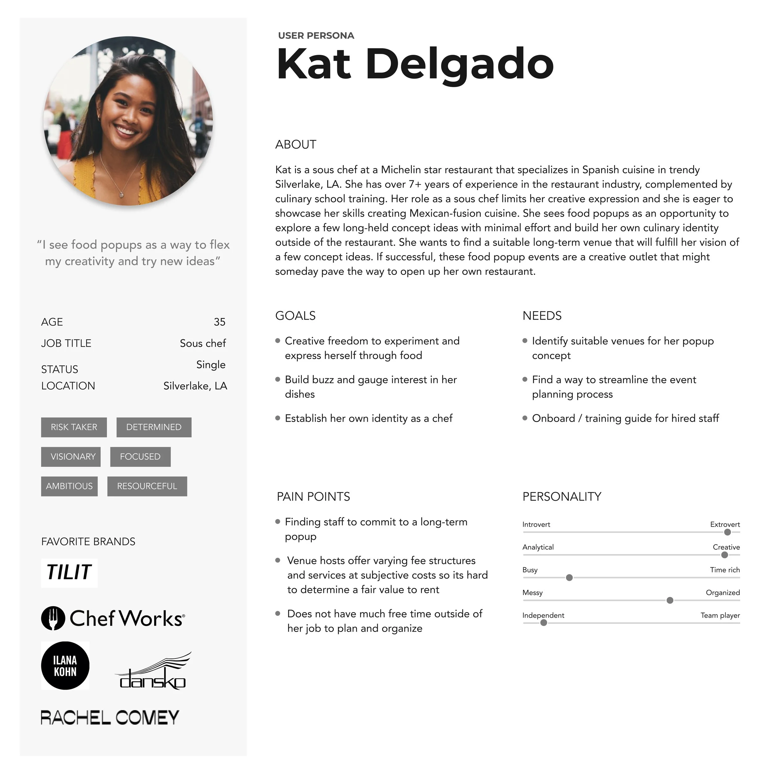 Kat, a millennial professional chef utilizing long term food pop-ups to test concept ideas for a brick-and-mortar restaurant
